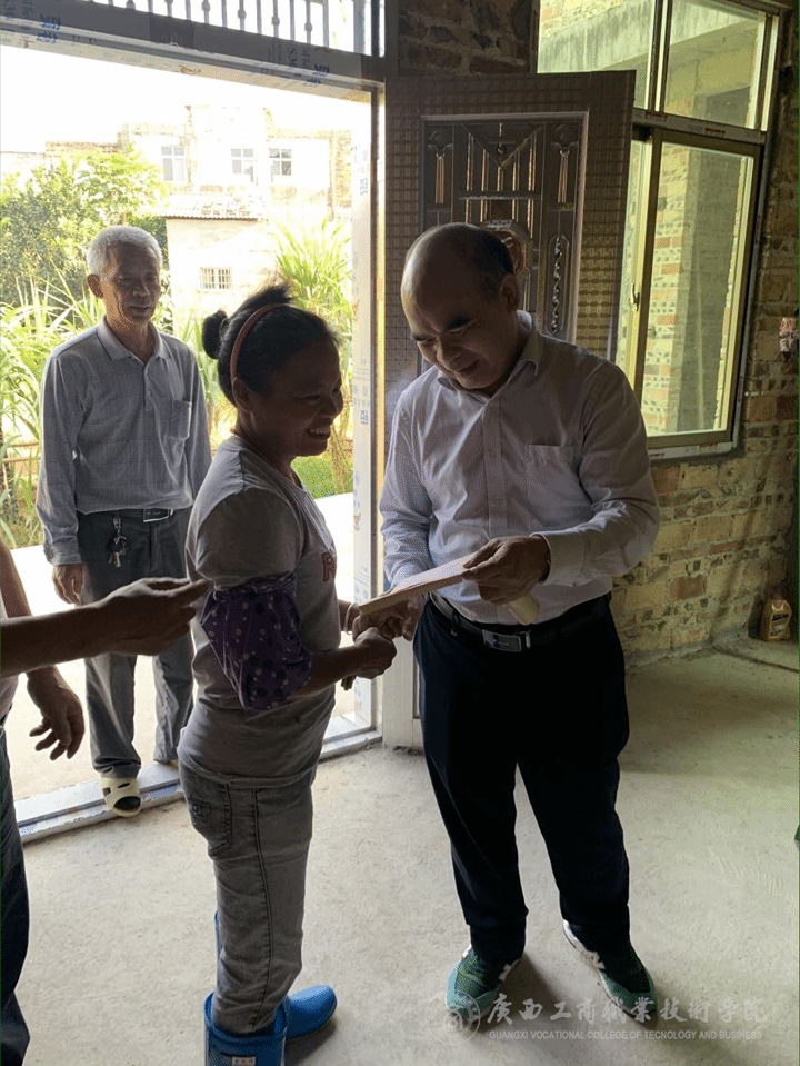 同時(shí),覃武云率隊(duì)在走訪(fǎng)慰問(wèn)了八角、良村、水亭、那若等6個(gè)定點(diǎn)幫扶村的過(guò)程中,與各幫扶村的“兩委”班子成員面對(duì)面地進(jìn)行了座談交流,并聽(tīng)取了駐村第一書(shū)記的工作情況匯報(bào),了解了幫扶村2019年的工作成就、困難及下一步工作計(jì)劃,對(duì)駐村第一書(shū)記為扶貧工作做出的貢獻(xiàn)表示贊許,并鼓勵(lì)他們要貫徹落實(shí)脫貧攻堅(jiān)工作部署,為群眾辦好事、辦實(shí)事,扎實(shí)推動(dòng)扶貧工作有序開(kāi)展,要注意安全,保重身體,堅(jiān)守紀(jì)律,保持良好作風(fēng)。各駐村第一書(shū)記及工作隊(duì)員紛紛表示,感謝學(xué)院黨委的關(guān)心與支持,一定繼續(xù)努力工作,保證完成扶貧任務(wù)。