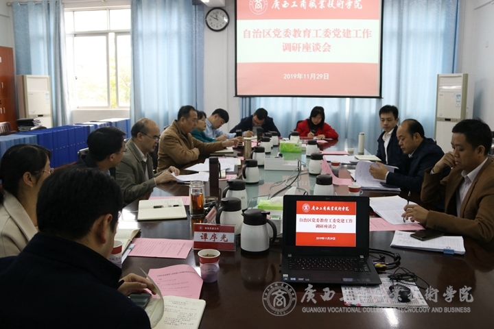 11月29日上午,自治區教育工委黨建工作調研組第四組組長、駐自治區教育廳紀檢組副組長王第海一行3人來到我院開展黨建工作調研,調研方式包括聽取工作情況匯報、與會人員座談交流和查閱黨建工作資料等。學院黨委書記覃武云,學院黨委副書記、紀委書記蒙啟成以及學院相關黨政部門負責人參加了調研座談會。