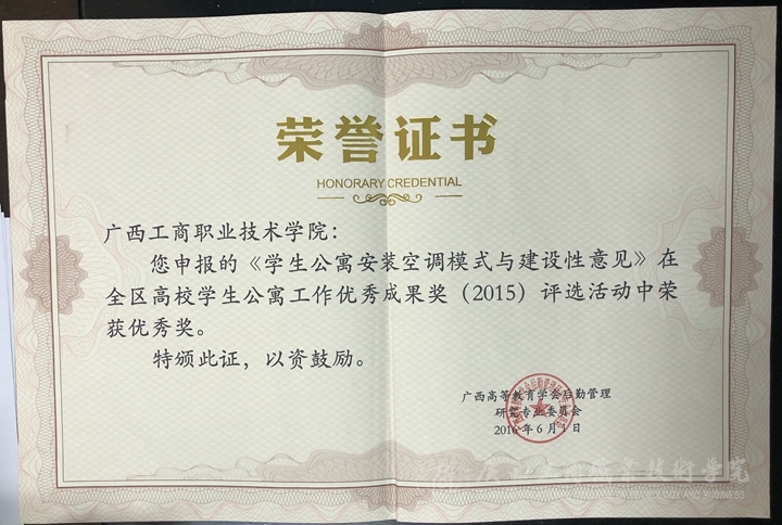 (全區(qū)高校學(xué)生公寓工作優(yōu)秀成果獎)