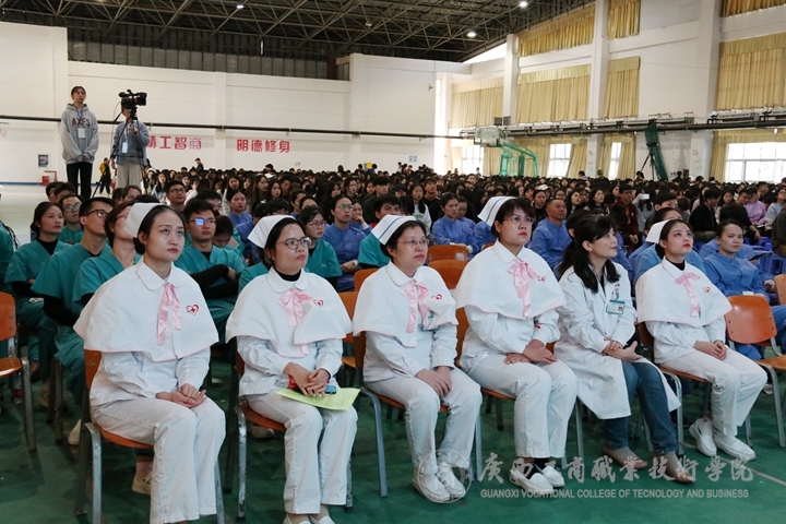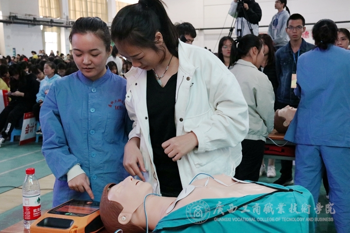 為普及我院2019級全體師生的急救知識及技能并緊密配合我院2019級學生軍事訓練工作的實施,2019年12月3日(星期二)下午,我院邀請了中國心胸血管麻醉學會心肺復蘇委員會廣西辦事處黃玲教授及團隊醫護人員約60人,在鵬飛校區文體館二樓,開展了2019級新生急救知識公益培訓講座及技能培訓,培訓學生人數約3000人,其中:800名學生參加了心肺復蘇及自動體外除顫儀操作實訓。