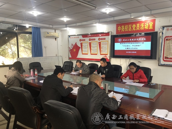 12月8日,財信系黨總支在中堯校區工會樓2樓會議室召開2019年度黨員領導干部“不忘初心、牢記使命”專題民主生活會。財信系班子成員蘇波、趙婷、裴朝東、譚序光同志參會,黨總支委員、組織員列席,學院黨委委員、副院長陳寧春同志參會并指導。
