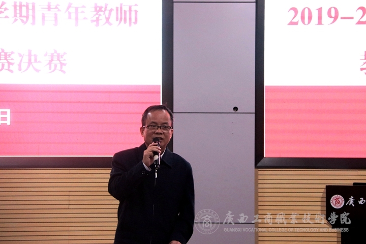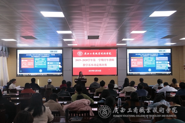 12月10日,我院于鵬飛校區教學樓視頻會議室舉行了2019—2020學年第一學期青年教師教學基本功競賽決賽。本次決賽由廣西金融職業技術學院黨委副書記、紀委書記劉華政,南寧職業技術學院信息工程學院副院長許建豪,廣西幼兒師范高等專科學校質量管理辦公室主任吳嚴,廣西國際商務職業技術學院教務處處長李慶文,廣西水利電力職業技術學院質量督導處處長龍艷紅,廣西機電職業技術學院教務科研處副處長黃金來,廣西經貿職業技術學院教務處處長程波作為本次決賽評審專家;學院黨委書記覃武云、學工部、評估辦各一名領導、各系部主任、分管教學工作副主任、教研室主任、副主任、專業帶頭人、課程負責人、教務科研處全體人員、2019年新進教師等參與觀看本次比賽。教務科研處副處長李紅梅主持本次比賽。