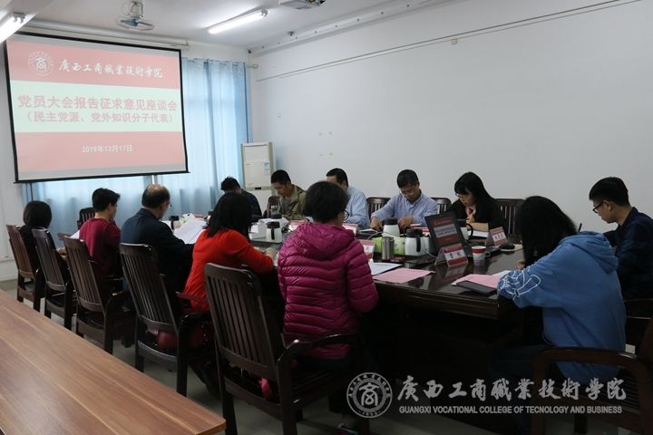 據悉,本次座談會主要是為了開好黨員大會,總結好五年來學院發展成就和有效經驗,更好地謀劃下一階段學院改革發展的目標和任務,對《中國共產黨廣西工商職業技術學院委員會工作報告(征求意見稿)》《中國共產黨廣西工商職業技術學院紀律檢查委員會工作報告(征求意見稿)》征求意見。