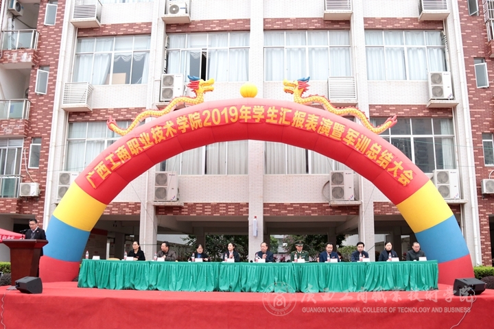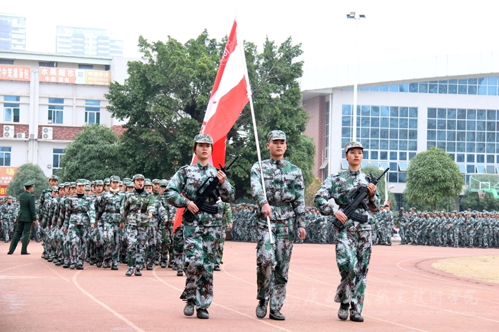 12月23日上午,我院于鵬飛校區田徑場隆重舉行2019年學生匯報表演暨軍訓總結大會。學院副院長李仕欽、武警廣西總隊機動支隊一大隊大隊長黃康洋出席大會,教務科研處、后勤管理處和各系主任、黨總支書記、學工副主任、2019級輔導員、2019級全體參訓學生、教官等參加了此次大會,大會由黨委學生工作部副部長林雯主持。