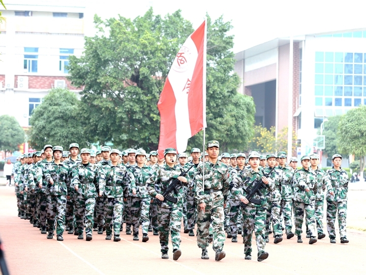 首先全體起立,奏唱國歌,行注目禮。接著,林雯向大家依次介紹了出席大會的領導。隨后軍訓各方塊隊伍進行分列式表演,他們穿著整齊的軍裝,邁著堅定的步伐,喊著嘹亮的口號依次通過主席臺接受檢閱。經過15天軍訓,磨練了同學們鋼鐵般的意志,他們嘹亮高亢的軍歌響徹云霄,鏗鏘有力的口號振奮人心,用最好的狀態向大家展示軍訓的訓練成果。