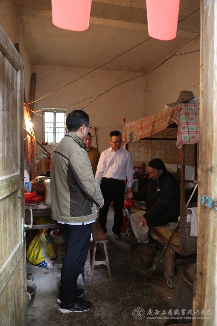 慰問組還先后來到黃秀平、黎瓊、朱惠芬等貧困戶家中進行慰問。黃秀平是蒙啟成副書記幫扶聯系戶,視力一級殘疾,低保戶。黎瓊是低保戶,因病致殘。朱惠芬則是公共基礎部張居設主任幫扶聯系戶,也是低保戶。蒙啟成副書記、闕勇平副院長與他們親切交談,了解生活情況,發放慰問金,為他們建設家園給予力所能及的幫助,鼓勵他們盡早實現脫貧致富。