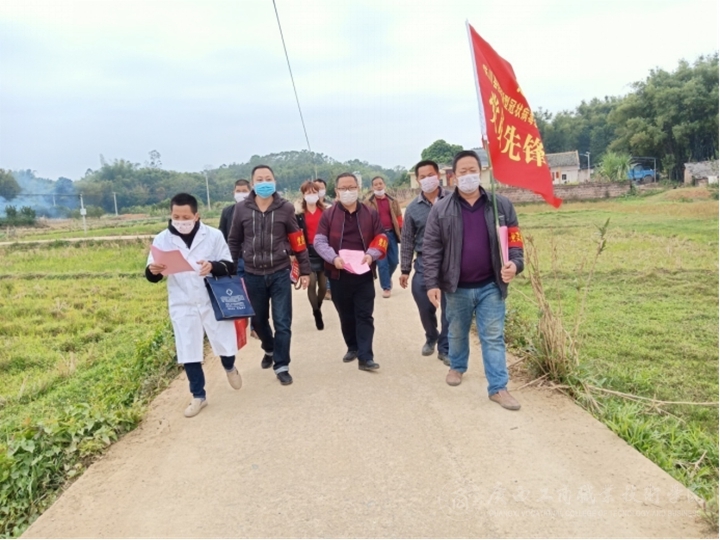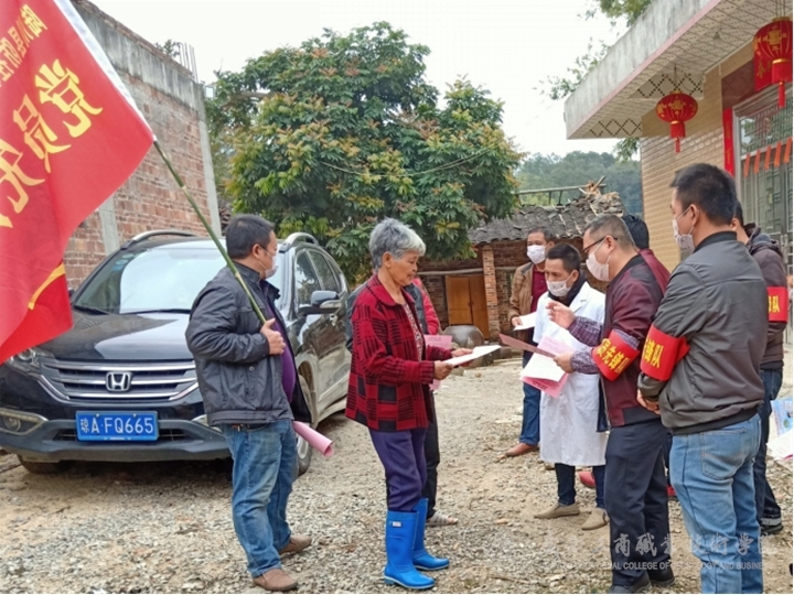 “疫情就是命令!”學院派往陸川縣的第一書記們匆匆結束春節假期,返回駐守村開展防疫工作,他們克服村居道口分散的困難,快速完成道路設卡排查,安排人員24小時輪流值守。迅速組織隊伍入戶做疫情檔案登記、張貼標語、拉橫幅、發放防疫宣傳單等,提醒村民做好防護措施,做到宣傳、排查全覆蓋,確保不漏一戶一人。