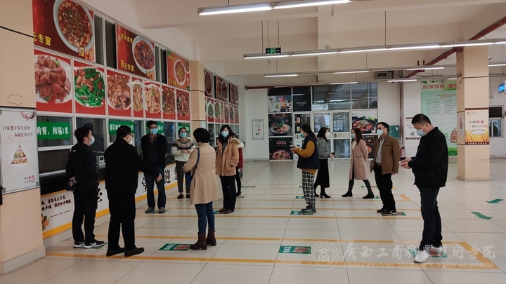 疫情期間校園食品安全涉及到廣大師生的權益,為強化我院食堂食品安全管理,控制堂食就餐安全風險,切實保障我院食堂疫情期間有序就餐,學院后勤管理處于2020年4月7日早上9:30-12:00組織開展了疫情應對學生就餐模擬演練,學生就餐模擬演練在學校鵬飛校區一、二樓食堂、中堯校區一、二樓食堂進行,主管學院后勤管理工作的副院長陳寧春現場指導演練活動,后勤管理處副處長莫春華、后勤管理處全體中層、各行政教輔部門、學生工作部中層領導、各系學工副主任以及2018級、2019級輔導員共計二十余人參與演練。