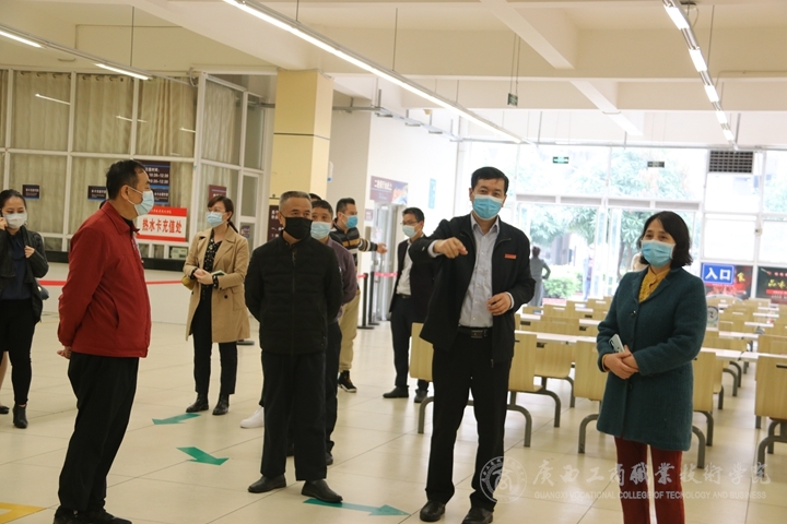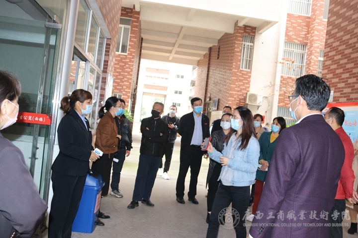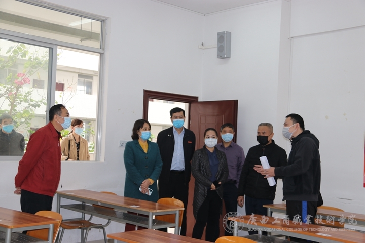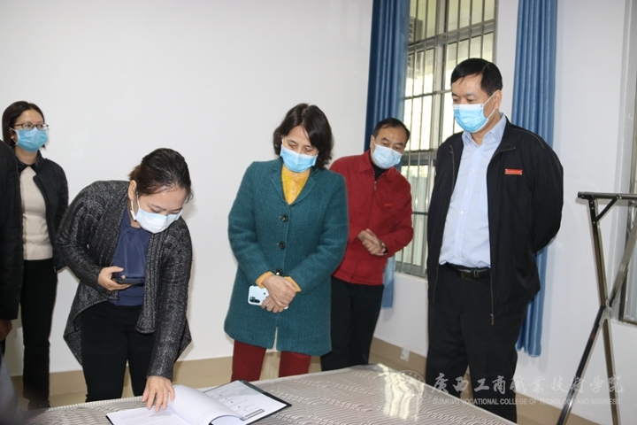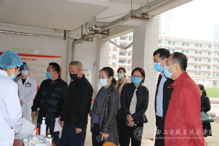 匯報會結束后,評估組在李維院長、蒙啟成副書記、安仲文副院長、陳寧春副院長及有關工作人員的陪同下,分別實地檢查了我院的教室、學生宿舍、醫務室、隔離室、留觀室、防疫物資儲備室、宣傳欄、食堂等場所的開學準備工作情況,現場查看了師生返校演練過程,并查閱了有關臺賬,對負責具體工作的相關工作人員進行了詳細的問詢和具體的工作指導。