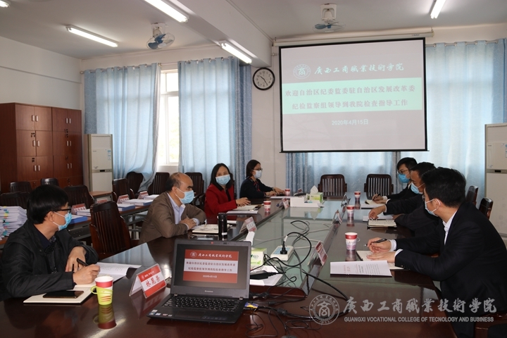 2020年4月15日,自治區紀委監委駐自治區發展改革委紀檢監察組組長李祚標、副組長謝卓營、主任科員龍渝文一行三人來我院督導檢查2020年春季學期師生返校準備工作。學院黨委書記覃武云,紀委書記韋云鳳以及學院辦公室、學院紀委相關負責人等參加了此次調研。