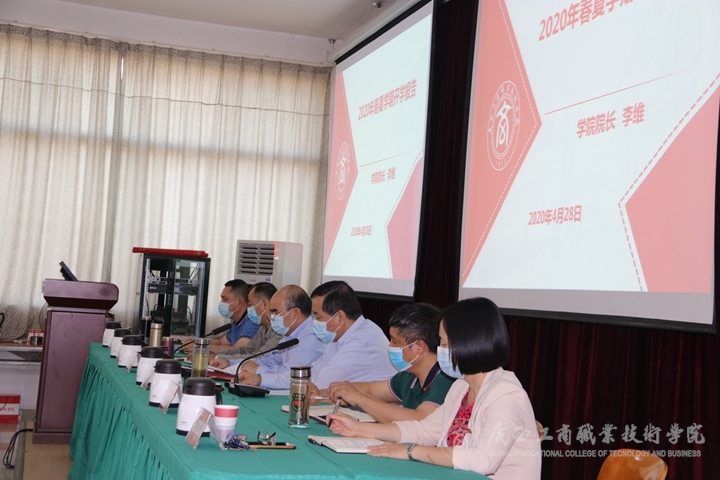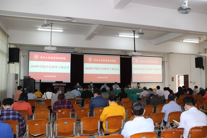 4月28日上午,我院于鵬飛校區教學樓報告廳召開學院2020年中層領導干部會議。本次大會由學院黨委書記覃武云主持,院長李維在會上做開學工作報告。我院在校領導班子成員參加會議。