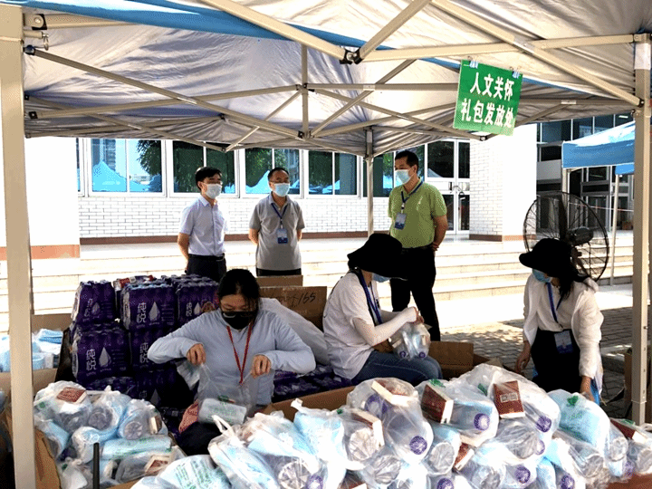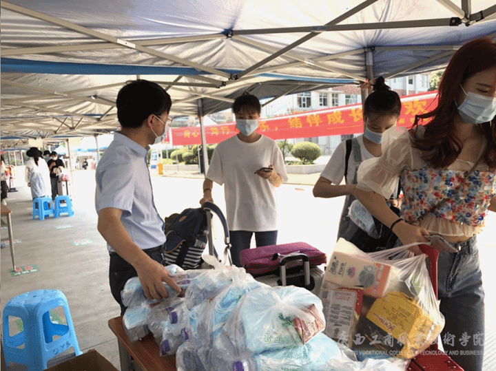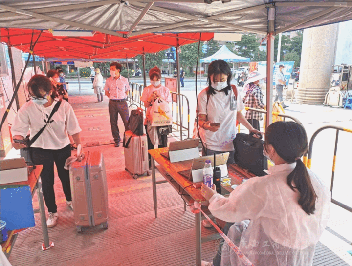 當(dāng)天,校門口的行李物品消殺及更換新口罩是返校的第一站,從源頭上做好同學(xué)們的健康保護(hù);接著是第一次測溫點(diǎn)測溫檢查,體溫合格學(xué)生將通過今日校園掃碼進(jìn)入校園,體溫異常則需原地等待工作人員進(jìn)一步檢查和處理;走過體溫正常安全通道,就來到第二次測溫點(diǎn)進(jìn)行體溫復(fù)核,并在今日校園進(jìn)行登記;最后,同學(xué)們還領(lǐng)取到學(xué)院精心準(zhǔn)備的健康包,里面放有口罩、紙巾和水等物品。同時(shí),為做好防暑工作,學(xué)院還安排了三輛接駁車于地鐵口與校門口之間往返,接送同學(xué)們安全返校。