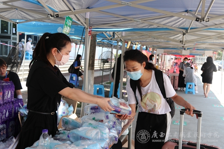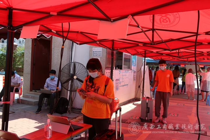口罩淺遮汝笑容,難掩君之雀躍心。清晨8點,廣商院鵬飛校區(qū)各部門嚴陣以待,財信系領導干部、專兼職輔導員等各崗位工作人員按部就班,以謹慎的態(tài)度和暖心的微笑迎接同學們的歸來。行李物品消毒、摘取路上配戴口罩、雙手消毒、取用佩戴新口罩、一次測溫、掃碼驗證身份、二次測溫、發(fā)放“健康包”、掃碼入住宿舍,流程指引清晰,同學們返校入園順利。
