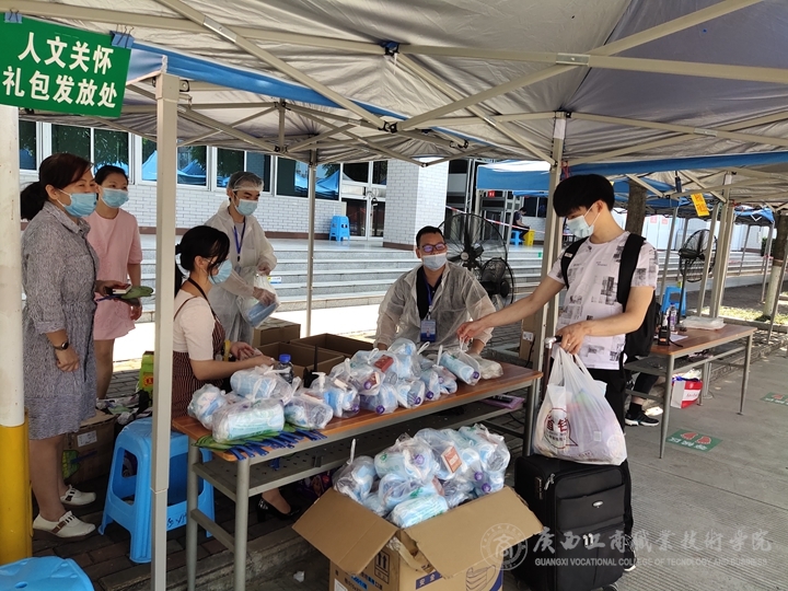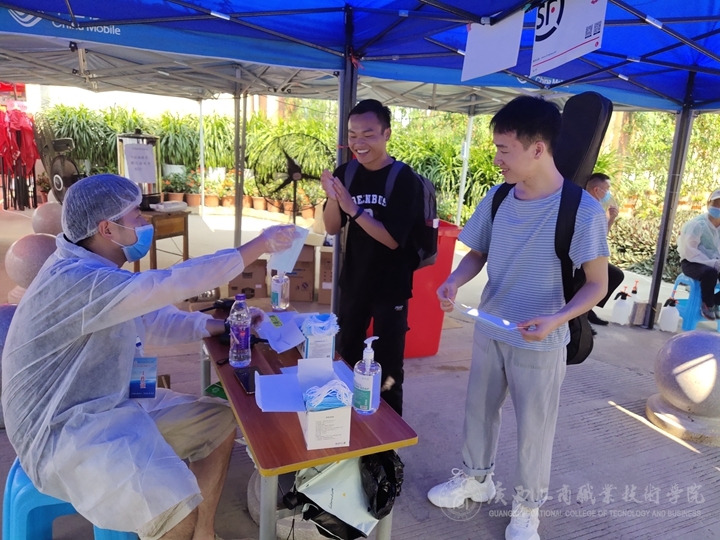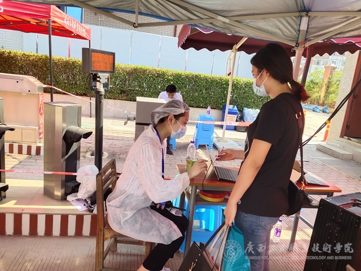 清晨的空氣清新舒爽,燦爛的陽(yáng)光照耀著大地。校門(mén)口,迎來(lái)了久違的莘莘學(xué)子...... 校道上那醒目的“同心,同樂(lè),結(jié)伴成長(zhǎng),歡迎回來(lái)”的橫幅,讓人激動(dòng)不已。“返校同學(xué)請(qǐng)排好隊(duì),接受體溫檢測(cè)......”,老師們一早已在各個(gè)工作崗位上忙碌開(kāi)來(lái)。當(dāng)經(jīng)管系學(xué)子乘車(chē)來(lái)到校門(mén)口,就迎來(lái)返校的第一站。首先進(jìn)行的是行李物品消殺及更換新口罩,從物品上做好學(xué)子們的健康保護(hù);接著是第一次測(cè)溫點(diǎn)測(cè)溫檢查,體溫檢測(cè)合格的學(xué)子將通過(guò)今日校園掃碼進(jìn)入校園,體溫異常則需原地等待工作人員進(jìn)一步檢查和處理;走過(guò)體溫正常安全通道,就來(lái)到第二次測(cè)溫點(diǎn)進(jìn)行體溫復(fù)核,并在今日校園進(jìn)行登記;最后,學(xué)子們還領(lǐng)取到學(xué)院精心準(zhǔn)備的“愛(ài)心健康包”,里面放有十三個(gè)口罩、一瓶水和一包紙巾。不僅如此,為了保障學(xué)子們的健康,系部后續(xù)安排每個(gè)班級(jí)的兩位同學(xué)進(jìn)行防疫工作的培訓(xùn),每天為各自班級(jí)的同學(xué)檢查體溫。