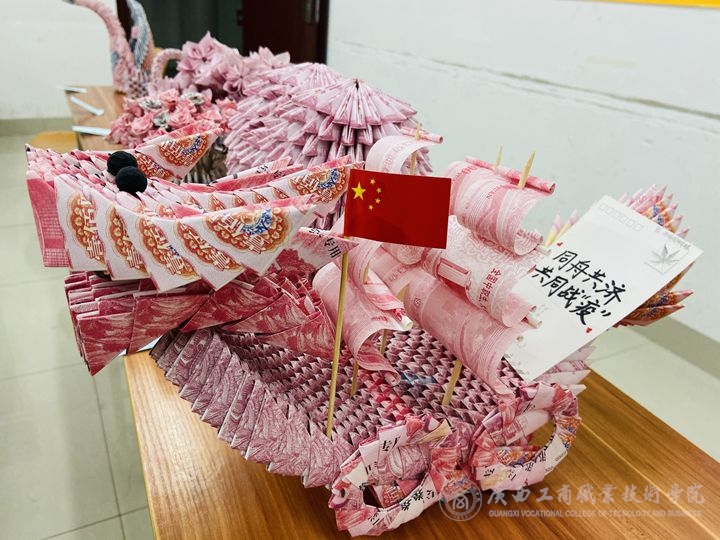 參賽作品主要使用的材料是廢棄的點鈔練功券,由各個參賽隊伍結合自身的創(chuàng)意,圍繞主題折疊出不同造型的作品,歷時一星期精心準備。本次比賽旨在鼓勵全系學生充分利用課余時間,培養(yǎng)技能,提高職業(yè)技能水平和動手能力,增強創(chuàng)新意識。