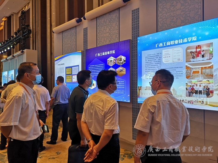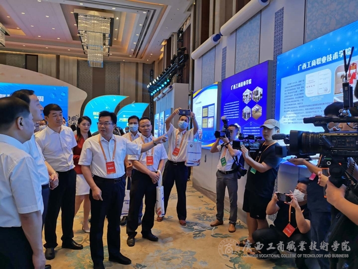 在與會領導嘉賓巡展環節過程中,吳局長特地就我們廣西參展的兩所糧食職業院校情況專門向國家糧食和物資儲備局張務鋒局長做了匯報講解。