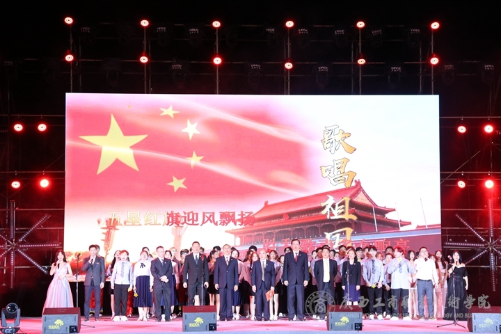 最后,本次晚會在學院合唱團以及全體師生合唱的《我和我的祖國》中圓滿結束。
