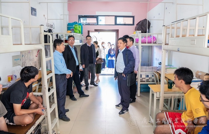 為學習兄弟院校在學生宿舍管理工作、衛生管理以及文化建設等方面的經驗,2020年10月23日上午,我院安仲文副院長帶領黨委學生工作部、各二級學院分管學生工作主要負責人、教師代表以及學生代表赴廣西建設職業技術學院進行業務交流學習。廣西建設職業技術學院伍耿清副院長熱情接待我院一行。