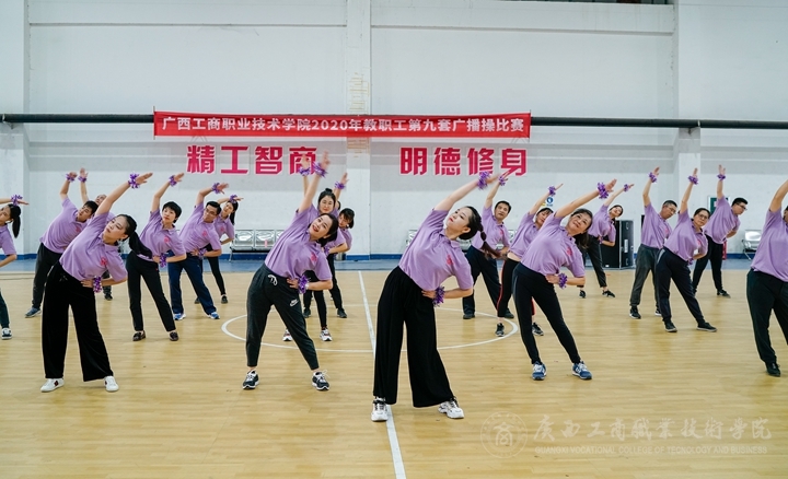 豐富教職工文體生活,提高廣大教職工身心素質(zhì),增強(qiáng)教職工團(tuán)結(jié)協(xié)作與頑強(qiáng)拼搏意識(shí)。11月20日,我院于鵬飛校區(qū)文體館二樓舉辦2020年教職工第九套廣播體操比賽。本次比賽共有各工會(huì)分會(huì)、直屬工會(huì)小組合計(jì)16個(gè)隊(duì)伍參加。學(xué)院黨委副書(shū)記、工會(huì)主席蒙啟成出席并參加了比賽。本次大賽裁判長(zhǎng)由通識(shí)教育學(xué)院尹成功老師擔(dān)任。