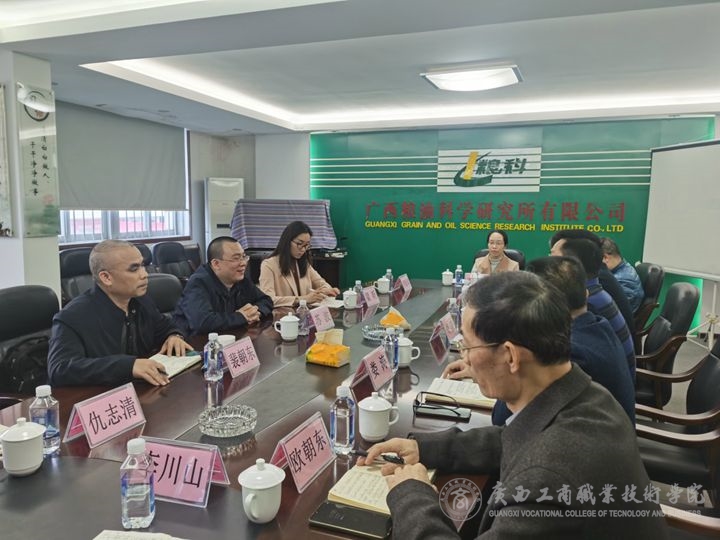 2021年2月1日,學院教務處副處長蘇波、糧油康旅學院黨支部書記梁昕、副院長裴朝東一行4人赴廣西糧油科學研究所有限公司交流。
