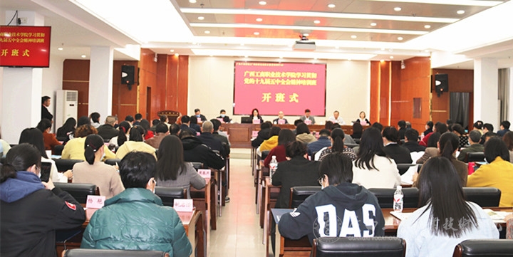 為深入學(xué)習(xí)貫徹黨的十九屆五中全會精神,切實提高干部對黨的十九屆五中全會精神實質(zhì)和思想內(nèi)涵的認(rèn)識和理解,把思想統(tǒng)一到黨的十九屆五中全會精神上來,把力量凝聚到實現(xiàn)黨的十九屆五中全會確定的各項任務(wù)上來,2021年3月3日下午,學(xué)院學(xué)習(xí)貫徹黨的十九屆五中全會精神培訓(xùn)班在廣西干部學(xué)院開班。學(xué)院黨委書記覃武云、院長李維、黨委副書記蒙啟成、副院長安仲文、紀(jì)委書記韋云鳳、副院長闕勇平、廣西干部學(xué)院院長(主任)吳秀芳出席了開班儀式。學(xué)院中層管理干部,分管工作負(fù)責(zé)人,基層黨組織支部書記、委員、組織員,以及其他參訓(xùn)人員共計106人參加培訓(xùn)。開班儀式由蒙啟成副書記主持。