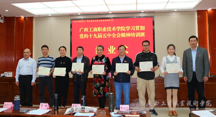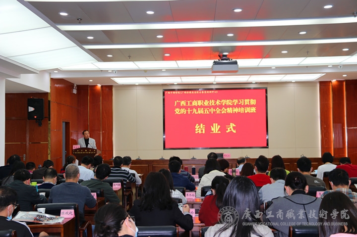 3月5日下午17點30分,學院學習貫徹黨的十九屆五中全會精神培訓班結業式在廣西干部學院順利舉辦。學院黨委書記覃武云、院長李維、黨委副書記蒙啟成、副院長安仲文、紀委書記韋云鳳、副院長闕勇平出席了結業式。結業式由蒙啟成副書記主持,覃武云書記在結業式上做總結講話。培訓班全體學員參加了結業式。