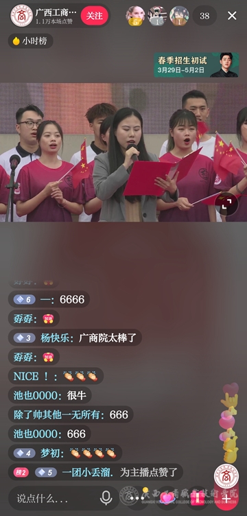 為慶祝壯族三月三歌圩節(jié),深化民族團(tuán)結(jié)氣氛,喜迎建黨100周年,4月12日下午,我院2021年“感黨恩 跟黨走”壯族三月三民族團(tuán)結(jié)教育活動在鵬飛校區(qū)正式開幕。在校學(xué)院領(lǐng)導(dǎo),各部門、各單位主要負(fù)責(zé)人,師生代表近千人現(xiàn)場參加開幕式,數(shù)百人通過抖音平臺全程直播在線觀看開幕式。