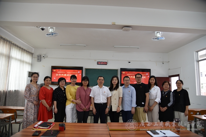 (管理學院黨總支委員會委員、馬克思主義學院黨支部委員會委員在簽約現場集體合影)