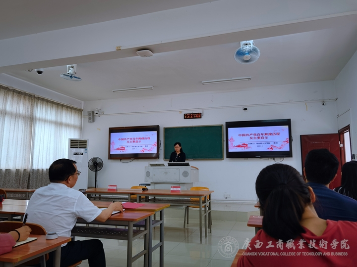 啟動儀式后,由馬克思主義學院教師覃田同志為參加活動教師講授黨課了《中國共產黨百年輝煌歷程及主要啟示》。