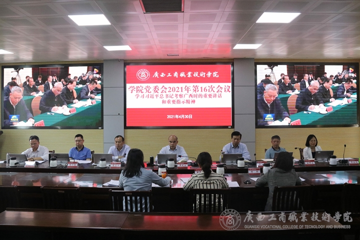 4月30日上午,學院黨委在鵬飛校區2119會議室召開2021年第16次會議,傳達學習習近平總書記視察廣西重要講話和重要指示精神,研究部署學院貫徹落實措施。學院黨委全體委員出席會議,黨委辦公室(黨委統戰部)、黨委組織部、黨委宣傳部等部門負責人列席會議。