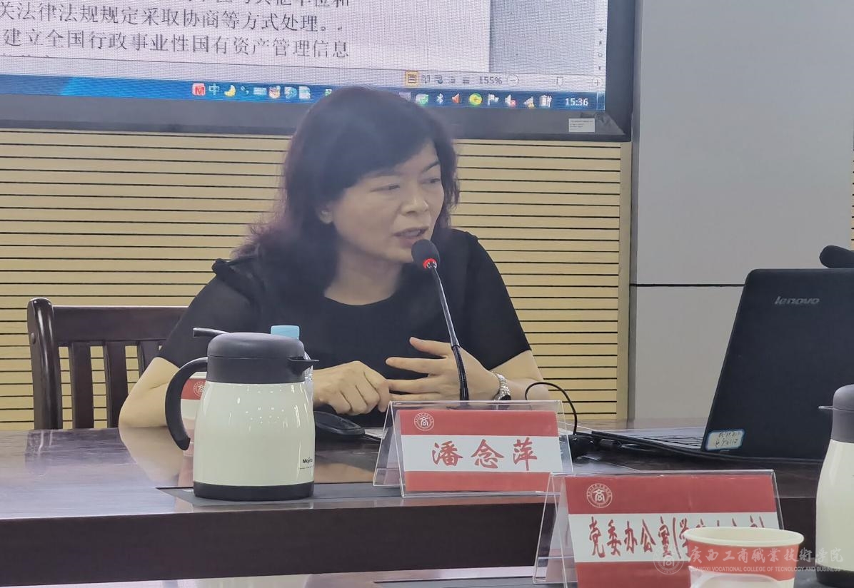 為進一步提高學院國有資產管理水平,增強依法管理國有資產意識,我院于5月12日召開國有資產管理工作培訓會。會議由學院副院長安仲文主持,邀請廣西水利水電職業技術學院總會計師潘念萍(正高級會計師)作《高校國有資產管理政策解讀及存在問題解決思路》專題培訓,學院各部門、各單位負責資產管理工作的領導、資產管理員及學院國有資產管理處全體成員參加了會議。