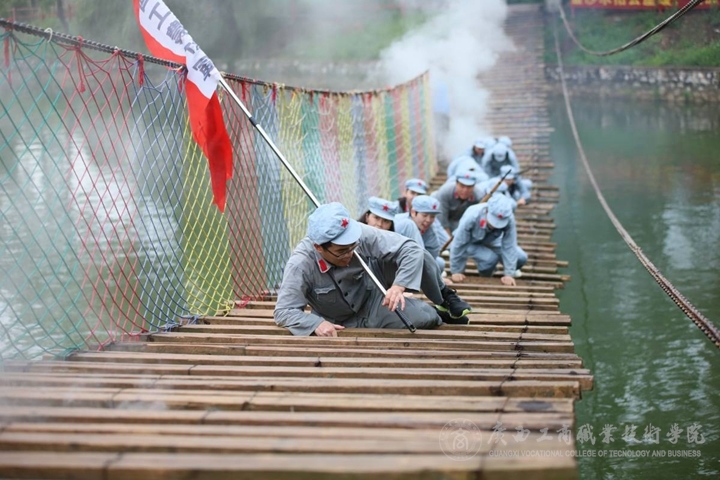 到達(dá)基地后,全體教師黨員頭戴紅軍帽、身著紅軍服、肩帶紅袖章,在基地教官的帶領(lǐng)下,聆聽黨史教育專題黨課,重溫入黨誓詞,并舉行了重走長征路出征前的授旗及宣誓儀式,拉開了重走長征路的序幕。隨后,全體黨員教師追隨著紅軍足跡,徒步穿越重重“封鎖線”,伴隨著激烈的“槍炮”聲,體驗了四渡赤水、爬雪山、飛奪瀘定橋、勝利會師等重大戰(zhàn)役的經(jīng)典場景,通過重走長征路上的實踐體驗,感受“紅軍不怕遠(yuǎn)征難,萬水千山只等閑”長征精神的洗禮,深刻領(lǐng)會了紅軍戰(zhàn)士不怕犧牲、百折不撓、勇往直前的革命精神。