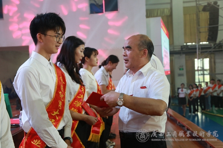 (覃武云書記為優秀畢業生頒發證書)