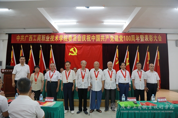 學院領導和榮獲“光榮在黨50年”紀念章老黨員代表合影