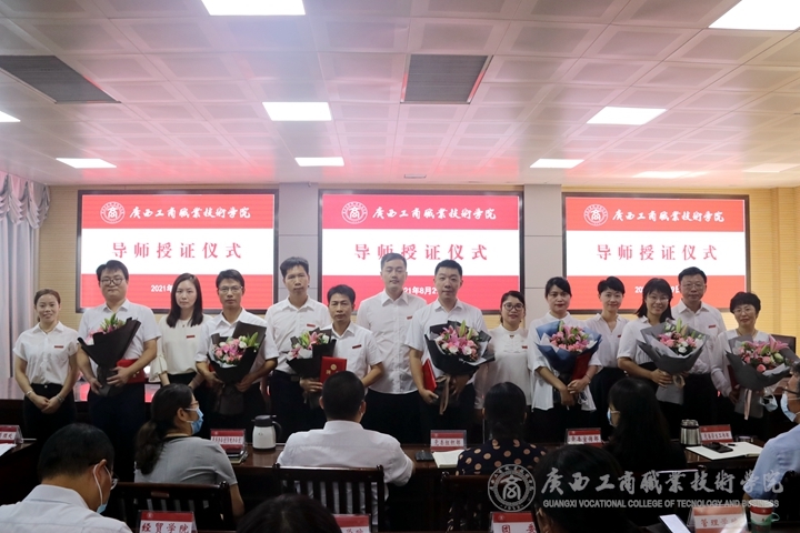 會議第一項議程舉行2021年導師授證儀式。會上,由李維院長為各位導師授證,青年教師向導師獻花并行鞠躬禮。