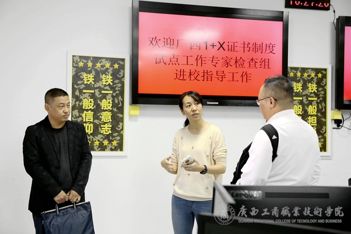 為加強對全區試點院校開展試點工作的過程動態管理與實地指導,規范全區1+X證書制度試點工作的開展,2021年10月27日上午,廣西1+X證書制度試點抽查監測工作組廣西建設職業技術學院教務科研處處長付春松、廣西電力職業技術學院繼續教育與培訓學院黨支部書記堯有平、廣西工業職業技術學院智能制造學院院長楊銓,隨同工作組成員前往的還有建設職院科研科科長劉海彬一行四人進校對我院1+X證書制度試點工作開展情況進行抽查監測。學院領導闕勇平副院長及相關部門負責人參加會議。
