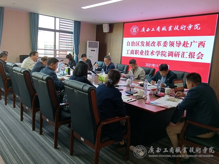 接著,李祚標組長一行在武鳴校區教學樓A2-710會議室聽取了學院有關工作情況匯報。學院院長李維從學院基本情況、武鳴校區項目規劃情況、項目推進情況、存在的困難及需要解決的問題等方面匯報了我院武鳴校區建設工作情況;學院紀委書記韋云鳳匯報了我院黨風廉政建設尤其是工程建設領域監督工作的情況;學院黨委書記匯報了在武鳴校區建設中黨委落實主體責任及黨委書記落實第一責任人責任等有關情況。自治區發展改革委社會處楊志鵬處長、投資處方子東同志就推動解決我院武鳴校區建設有關問題提出了意見和建議。隨后,李祚標組長對我院有關工作提出了意見和要求。他對武鳴校區建設工作進展表示充分肯定、十分振奮,并就推動我院武鳴校區建設和黨風廉政建設工作提出了明確要求。一是深入學習十九屆六中全會精神,凝聚力量,鼓舞士氣,教育和引導師生員工在思想上政治上行動上與黨中央保持高度一致;二是堅持問題導向,抓住機遇、提高效率,著力解決武鳴校區建設工作中存在的問題;三是進一步加強黨風廉政建設,黨委書記、院長要切實負起責任,加強對干部職工的教育監督,結合近期廣西高校違法違紀典型案例開展警示教育,圍繞查找出來的風險點,扎實開展整改,確保武鳴校區項目建設平穩推進。四是加強產教融合和品牌專業建設,找準自身定位,突出特色,力求在重點領域上取得突破,推動職業教育高質量發展。