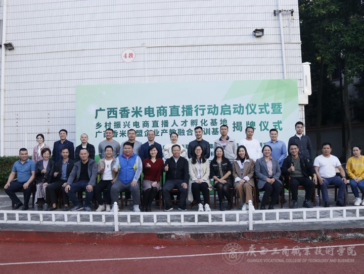為推進學校產教融合、校企合作水平,有效提升我校電商專業學生職業技能,更好服務廣西香米聯盟企業,11月18日下午,由廣西香米產業研究院聯合廣西糧食行業協會、廣西香米聯盟企業、廣州綠田園農業科技有限責任公司承辦的廣西香米電商直播行動啟動儀式暨鄉村振興電商直播人才孵化基地、廣西香米聯盟企業產教融合實訓基地揭牌儀式在我校中堯校區成功舉辦。學院副院長闕勇平、廣西香米產業研究院副院長張煌強、廣州綠田園農業科技有限公司副董事長戴春燕、廣西糧食行業協會副秘書長羅桂嬌及十八家廣西香米產業聯盟企業代表參加儀式。
