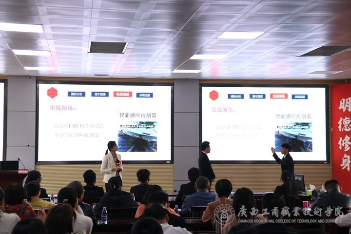 本次決賽共有14位青年教師入圍,隨著經貿學院葛明慧老師帶來《汽車營銷》課程拉開了比賽的序幕,參賽教師逐一登臺,結合教案,以教學演示為主,展示教學特色、詮釋教學理念。評委們根據參賽教師的教學基本功展示、教學設計與課堂教學效果等綜合評定選手表現。參賽教師們獨到精妙的教學設計,豐富多樣的教學手段,精彩獨到的課程展示,風趣幽默的語言表達贏得了評委專家組的高度認可。