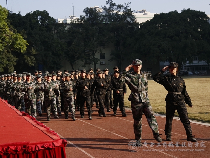 大會最后,學院領導代表學院黨委和全體教職員工,向關心和支持我院軍訓工作并在軍訓工作中付出辛勤勞動的武警廣西總隊機動支隊的兵官們表示衷心的感謝!且向本次軍訓組織、后勤保障的有關部門工作人員、輔導員表示誠摯的謝意!向圓滿完成軍訓任務的全體同學表示熱烈的祝賀!同時,希望同學們把從軍訓中的所學、所思、所悟,不斷內化為成長的動力,繼續頑強拼搏、積極進取、不負時代、不負韶華、不負家人和師長的殷切期望,牢記“精工智商,明德修身”的校訓,以此為嶄新的起點,以青春之我、奮斗之我在廣商院繼續書寫精彩的人生華章。