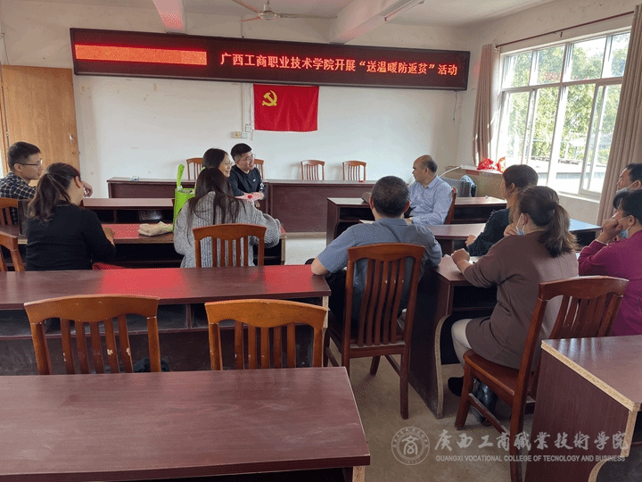 2021年12月15日,由學院黨委書記覃武云同志率隊,學校紀委書記韋云鳳、學院黨委組織部、經貿學院以及上一任第一書記和工作隊員等代表一行8人組成慰問組,赴陸川縣馬坡鎮靖西村、珊羅鎮四樂村開展“送溫暖防返貧”活動,走訪慰問駐村黨支部第一書記、村干部、未解除風險的監測對象。