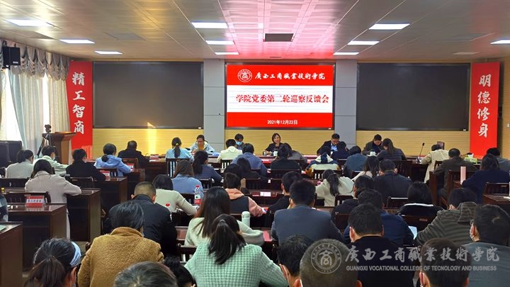 2021年12月22日下午,學院黨委第二輪巡察反饋會在鵬飛校區2119會議室召開。學院黨委委員、紀委書記、巡察工作領導小組辦公室主任韋云鳳同志出席會議并講話。巡察工作領導小組辦公室成員,巡察組全體成員,被巡察的學生工作部黨支部、財金學院黨總支、原糧油康旅學院/繼續教育學院黨總支、馬克思主義學院黨支部、后勤管理處黨支部、招生就業工作處黨支部六個基層黨組織所轄部門的全體人員參加會議。會議由學生工作部黨支部書記林雯同志主持。