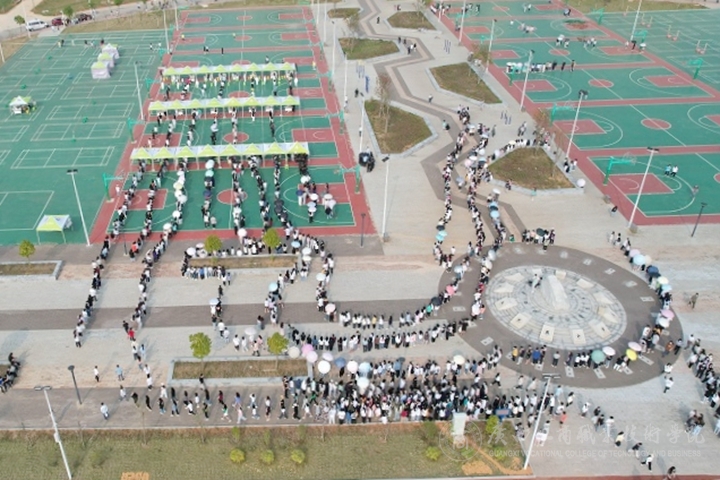 (武鳴校區(qū)有序核酸檢測現(xiàn)場鳥瞰圖? 財(cái)金學(xué)院供圖)