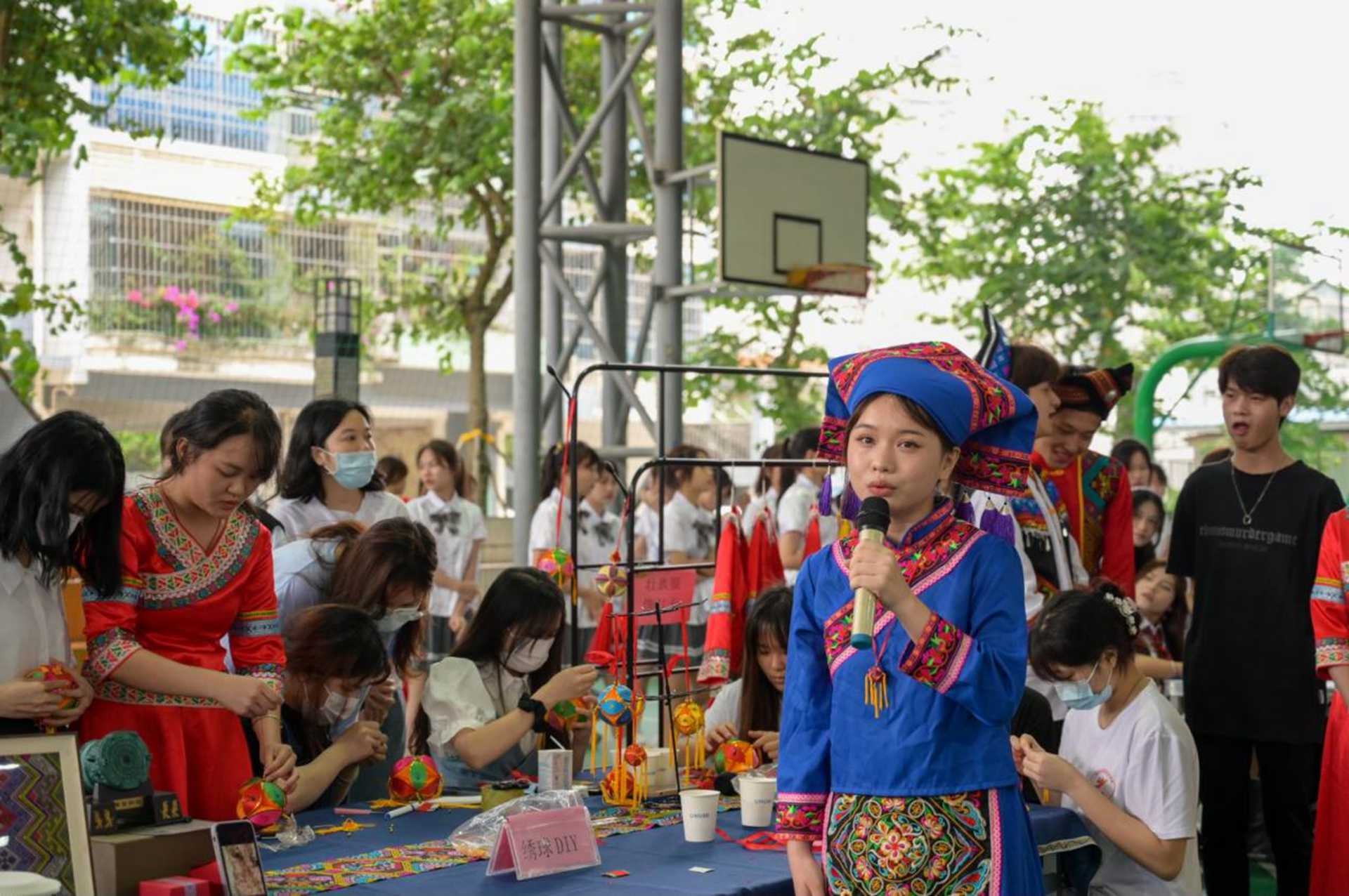 糧油康旅學院開展專業技能展演活動,糧食儲運與質量安全專業現場展演糧食原料認知、食品快檢技術;食品檢驗檢測技術專業開展BMI測量并提供營養配餐、壯族藥膳制作介紹與品嘗、DIY壯族特色保健藥包活動;食品智能加工專業展示各類米制食品的加工,如五色糯米飯、糯米酒等;酒店管理與數字化運營專業開展壯鄉主題調酒展演、主題茶藝展演;旅游管理專業開展組織師生體驗旅游文創產品、體驗繡球和銅鼓手工制作;嬰幼兒托育服務與管理專業開展舞蹈、音樂情景劇、手工、繪畫、韻律操等表演。