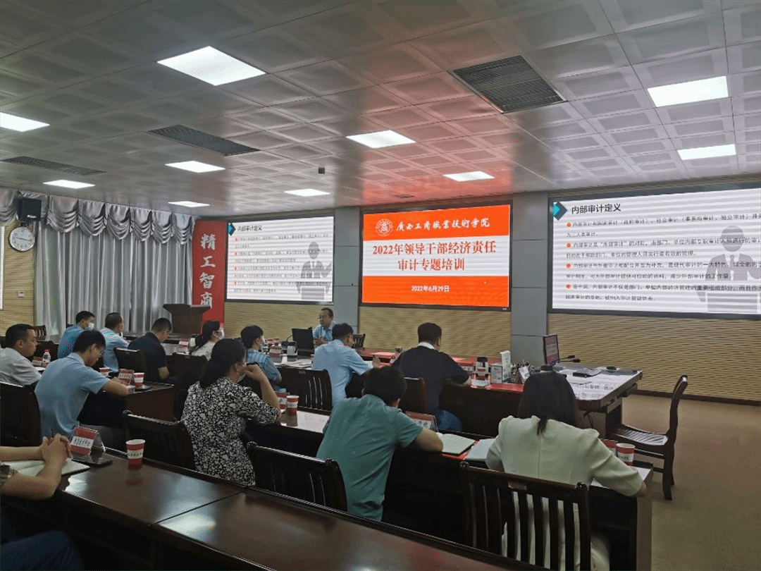 為增強學院領導干部財經法紀意識和底線意識,自覺接受審計監督,依法決策、民主決策、科學決策,正確履行領導干部經濟責任,促進教育事業健康可持續發展,我院特邀廣西財經學院瞿曉龍副教授開展“2022年領導干部經濟責任審計”專題培訓,各部門、各單位主要負責人及負責采購、資產、工程、財務、合同的工作人員參加了此次培訓。培訓由學院院長李維主持。