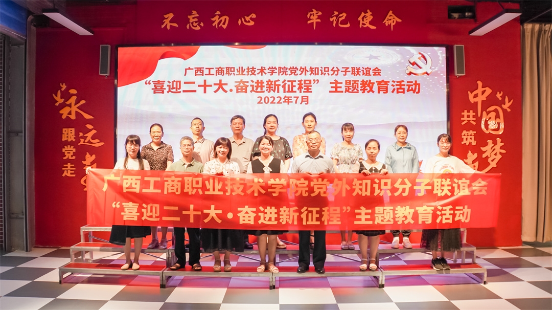 2022年7月6日,廣西工商職業技術學院黨外知識分子聯誼會(下文簡稱知聯會)赴南寧經開區兩新領域電影黨校(下文簡稱電影黨校)開展“喜迎二十大·奮進新征程”主題教育活動,黨委統戰部負責人、學院知聯會部分成員和部分黨組織統戰委員參加活動。