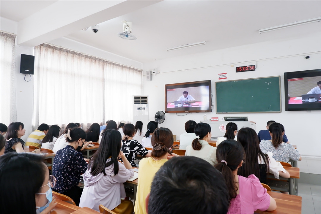 當天下午,期末大會以視頻會議的形式準時召開,分為主會場和三個分會場。全體學院領導、教職工在學院黨委書記覃武云和院長李維的帶領下,充分總結了2021-2022學年第二學期以來學院各項工作,同時對疫情防控和假期前后工作進行部署安排。