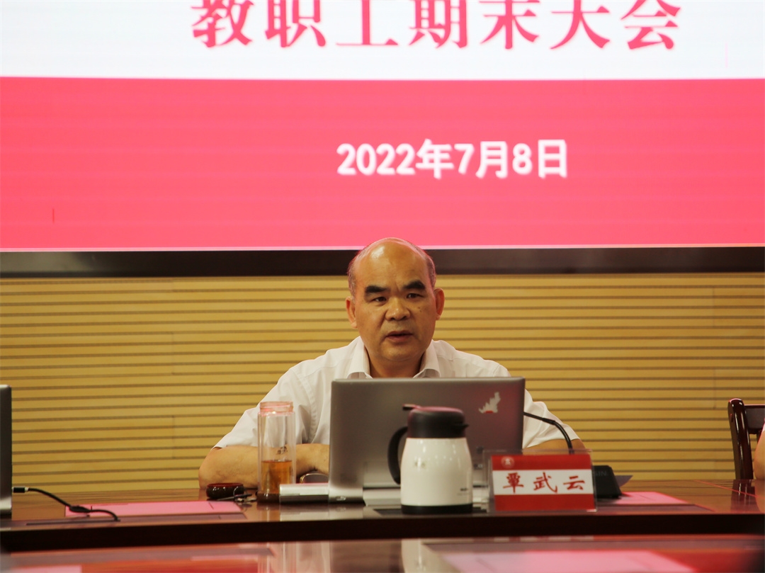 7月8日下午,我院2021-2022學年第二學期教職工期末大會在鵬飛校區召開。全體學院領導、教職工參加會議。會議由學院黨委書記覃武云主持。