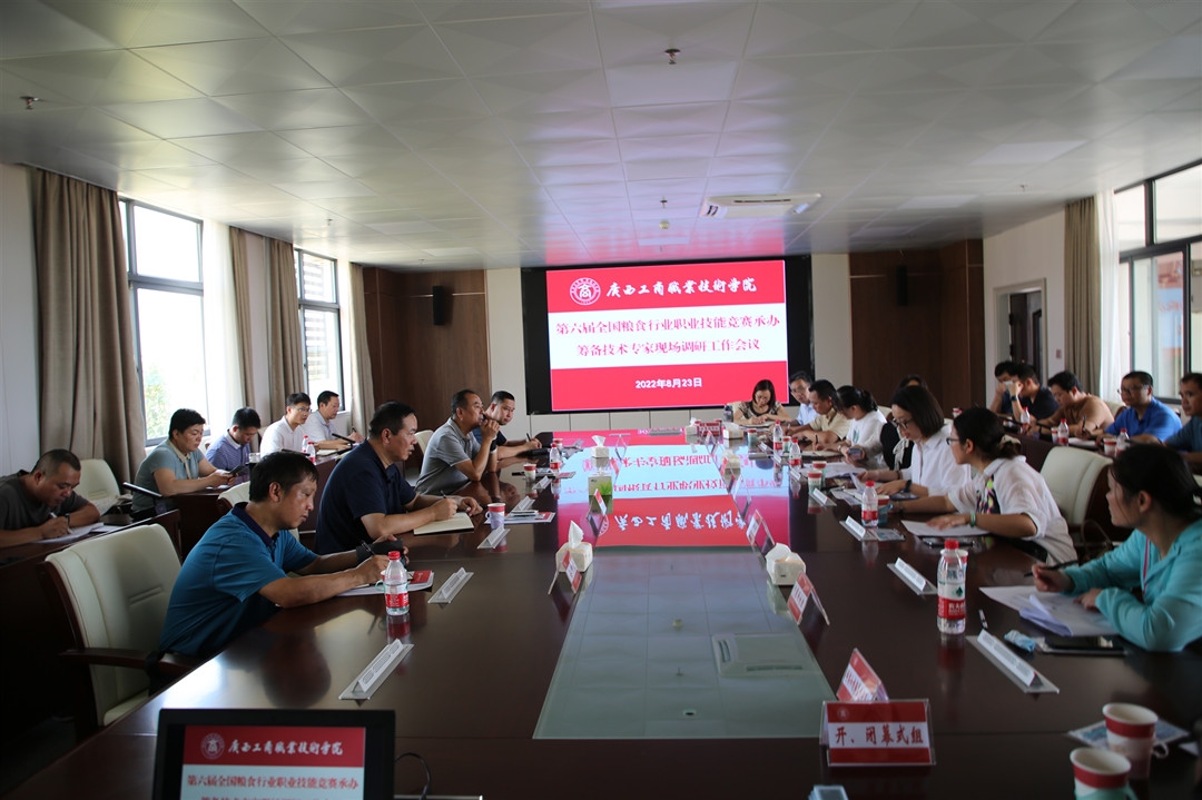 2022年8月23日上午,學院在武鳴校區召開第六屆全國糧食行業職業技能競賽承辦籌備工作現場調研會。學院領導,各專項工作組組長、副組長,競賽籌備辦公室全體工作人員等人員參加會議。李維院長出席現場調研會并主持會議 。