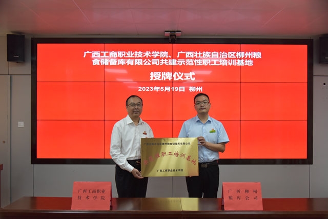近日學院在與柳州糧庫公司的洽談中,了解到當前廣西糧食行業亟需進行全方位、深層次的人才培訓。結合柳州糧庫公司的實際問題,學院充分依托在糧食和物資儲備領域的辦學特色和資源優勢,緊貼糧食行業各類專業技術人員在知識更新、能力提升及業務拓展等方面的各項需求,與柳州糧庫公司達成校企合作協議。5月19日,廣西工商職業技術學院、廣西壯族自治區柳州糧食儲備庫有限公司共建了示范性職工培訓基地,并舉行授牌儀式。下一步,學院將以校企合作為載體,深度開展校企雙主體育人各項工作,破解企業職工技能培訓以及糧油專業學生實習和就業等難題。